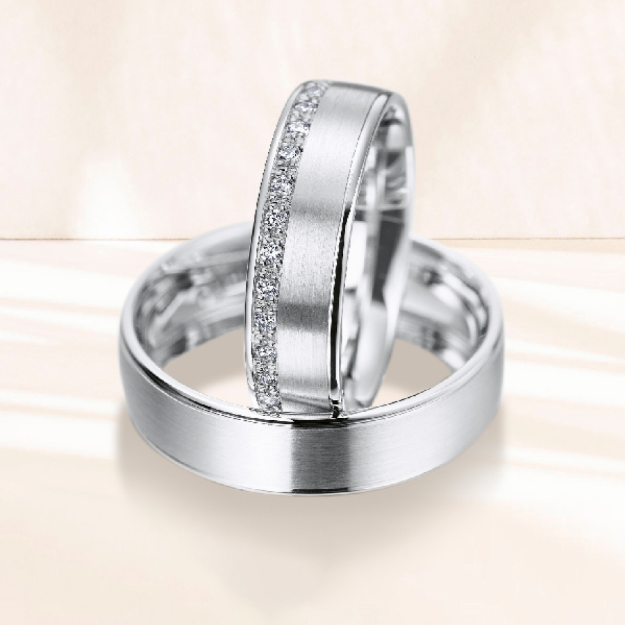 Erleben Sie bei uns das gesamte Meister-Ehering-Sortiment und damit eine große Auswahl an Gelb-Weiß, Rosegold oder Platin Eheringen. Mit Brillanten oder Diament, zart, elegant oder klassisch.